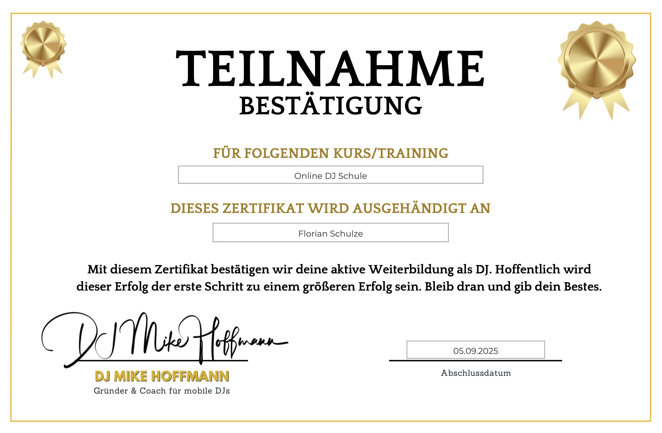 Gepostet auf R BilerTrustindex überprüft, ob die Originalquelle der Bewertung Google ist. DJ Florian war auf unserer Weihnachtsfeier und hat super Musik gemacht. Gerne nächstes Jahr wieder!Gepostet auf M Sander-FahrenholzTrustindex überprüft, ob die Originalquelle der Bewertung Google ist. Florian hat auf unserer Silberhochzeitsfeier einen Top Job abgeliefert. Die Gäste waren begeistert und die Tanzfläche voll. Volle Weiterempfehlung von uns.Gepostet auf R WTrustindex überprüft, ob die Originalquelle der Bewertung Google ist. Super DJ, die Tanzfläche war zu keiner Zeit leer und alle Gäste waren super zufrieden. Würde ihn immer wieder buchen und weiterempfehlen. Sehr freundlich und flexibel was Termine und Aufbau angeht. Wir hatten Florian für eine grüne Hochzeit gebucht. Vielen Dank für die super Musik.Gepostet auf J SiemersTrustindex überprüft, ob die Originalquelle der Bewertung Google ist. Rundum Sorglospacket! Wir haben Flo für ein 60 Geburtstag gebucht. Alles war perfekt! Sowohl die Kommunikation und Absprachen im Vorraus, als auch der Abend an sich. Flo ist auf alle Musikwünsche eingegangen und hat den Abend selbständig moderierte und 1A musikalisch begleitet. Wir können Ihn sehr weiterempfehlen! Vielen lieben Dank für den tollen Abend!Gepostet auf A KippenbergTrustindex überprüft, ob die Originalquelle der Bewertung Google ist. Wir haben DJ Florian für unsere Hochzeit gebucht. Es war ein super schöner Abend. Trotz noch hohen Temperaturen hat Florian es immer geschafft die Gäste zum Tanzen zu bewegen. Auch wurden alle Musikwünsche unkompliziert erfüllt.Gepostet auf R WenzelTrustindex überprüft, ob die Originalquelle der Bewertung Google ist. Auf einigen Partys gewesen wo er aufgelegt hat war einfach klasse. Deswegen für den eigenen 30ten gebucht und auch da wieder nicht enttäuscht worden.Gepostet auf N LeichnitzTrustindex überprüft, ob die Originalquelle der Bewertung Google ist. DJ Florian hat auf unserer Hochzeit aufgelegt und hat den Laden gerockt! Wir hatten super viel Spaß. Gute Laune, Gute Übergänge, Musikwünsche wurden mit eingebaut. Jederzeit wieder!Gepostet auf J BossTrustindex überprüft, ob die Originalquelle der Bewertung Google ist. Gerne wieder! Wir hatten Florian als DJ für unsere Hochzeit gebucht. Die musikalische Begleitung war den ganzen Abend über super und die Tanzfläche quasi nie leer. Alle Abstimmungen mit ihm waren sehr angenehm. Er hat im Hintergrund einfach sein Ding gemacht und denkt mit. Würden wir noch mal heiraten, dann gerne wieder mit Florian als DJ. Weiter so!Gepostet auf P DrekeTrustindex überprüft, ob die Originalquelle der Bewertung Google ist. Sehr empfehlenswert Florian hat unseren doppelten 30ten Geburtstag musikalisch sehr gut gestaltet, ist auf Wünsche eingegangen und hat für alle Altersklassen passende Musik parat gehabt. Es wurde ausgiebig getanzt und gefeiert. Vielen Dank, gerne wieder.
